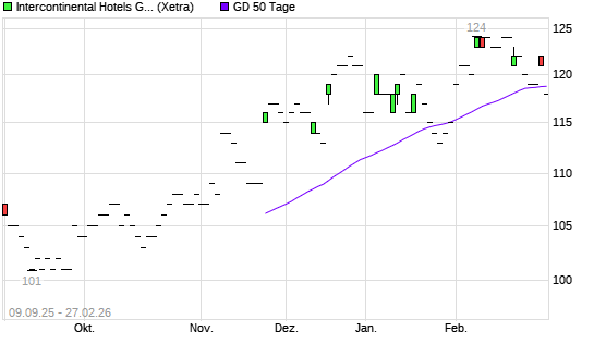 Mit dem Anstieg auf 121,00 EUR hat die InterContinental Hotels Group-Aktie am 26.02.2026 die 50-Tage-Linie nach oben gekreuzt.