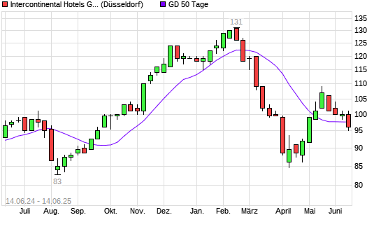 Mit dem Rücksetzer auf 96,00 EUR hat die InterContinental Hotels Group-Aktie am 13.06.2025 die 50-Tage-Linie nach unten gekreuzt.