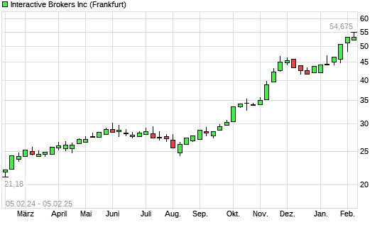 Mit dem Anstieg auf 213,40 EUR hat die Interactive Brokers-Aktie (ISIN US45841N1072) am 04.02.2025 ein neues All-Time-High erreicht und damit den Kurs vom 31.01.2025 eingestellt.