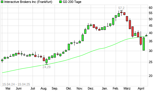 Mit dem Anstieg auf 152,75 EUR hat die Interactive Brokers-Aktie am 14.04.2025 die 200-Tage-Linie nach oben gekreuzt.