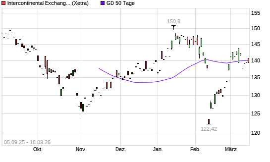 Mit dem Rücksetzer auf 139,18 EUR hat die IntercontinentalExchange Group-Aktie am 17.03.2026 die 50-Tage-Linie nach unten gekreuzt.