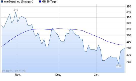 Mit dem Anstieg auf 282,00 EUR hat die Interdigital-Aktie am 21.01.2026 die 38-Tage-Linie nach oben gekreuzt.