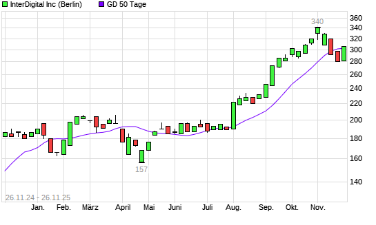 Mit dem Anstieg auf 310,00 EUR hat die Interdigital-Aktie am 25.11.2025 die 50-Tage-Linie nach oben gekreuzt.