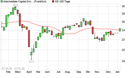Mit dem Anstieg auf 24,20 EUR hat die Intermediate Capital Group-Aktie am 06.01.2026 die 100-Tage-Linie nach oben gekreuzt.