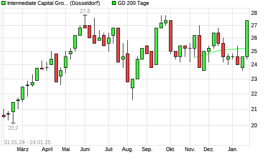Mit dem Anstieg auf 26,60 EUR hat die Intermediate Capital Group-Aktie am 23.01.2025 die 200-Tage-Linie nach oben gekreuzt.
