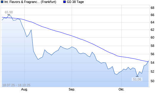 Mit dem Anstieg auf 54,44 EUR hat die International Flavors & Fragrances-Aktie am 17.10.2025 die 38-Tage-Linie nach oben gekreuzt.