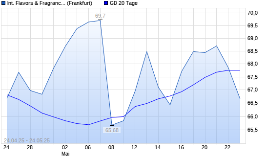 Mit dem Rücksetzer auf 66,68 EUR hat die International Flavors & Fragrances-Aktie am 23.05.2025 die 20-Tage-Linie nach unten gekreuzt.