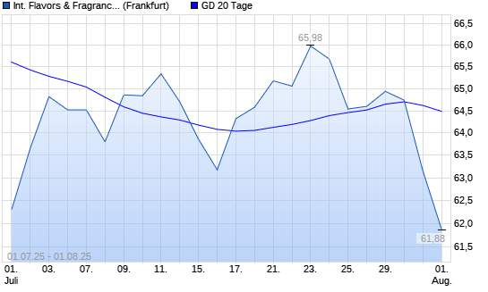 Mit dem Rücksetzer auf 63,16 EUR hat die International Flavors & Fragrances-Aktie am 31.07.2025 die 20-Tage-Linie nach unten gekreuzt.
