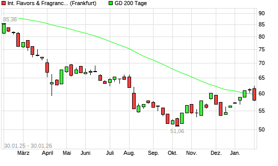 Mit dem Rücksetzer auf 57,96 EUR hat die International Flavors & Fragrances-Aktie am 29.01.2026 die 200-Tage-Linie nach unten gekreuzt.