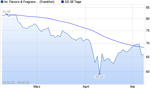 Mit dem Rücksetzer auf 65,68 EUR hat die International Flavors & Fragrances-Aktie am 08.05.2025 die 38-Tage-Linie nach unten gekreuzt.