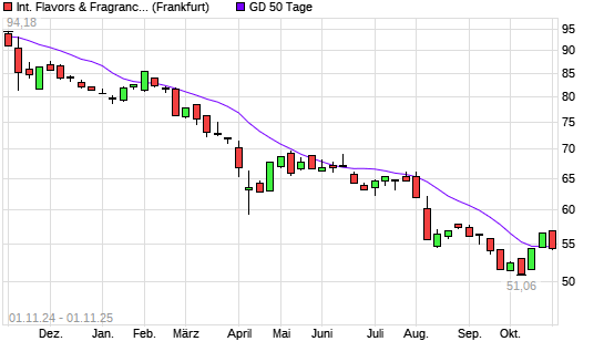 Mit dem Rücksetzer auf 54,46 EUR hat die International Flavors & Fragrances-Aktie am 31.10.2025 die 50-Tage-Linie nach unten gekreuzt.