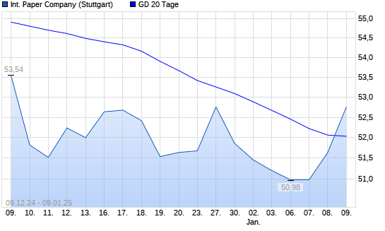 Mit dem Anstieg auf 52,00 EUR hat die International Paper-Aktie am 08.01.2025 die 20-Tage-Linie nach oben gekreuzt.