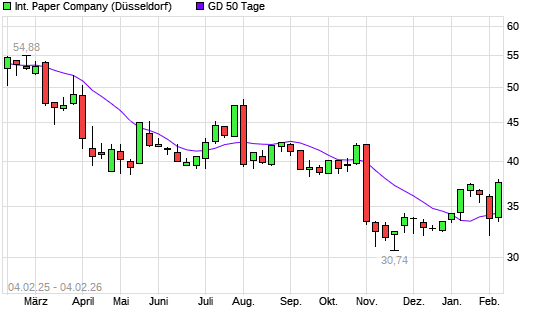 Mit dem Anstieg auf 35,44 EUR hat die International Paper-Aktie am 03.02.2026 die 50-Tage-Linie nach oben gekreuzt.