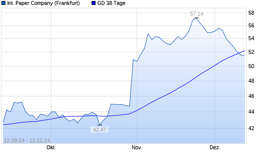 Mit dem Rücksetzer auf 51,54 EUR hat die International Paper-Aktie am 11.12.2024 die 38-Tage-Linie nach unten gekreuzt.