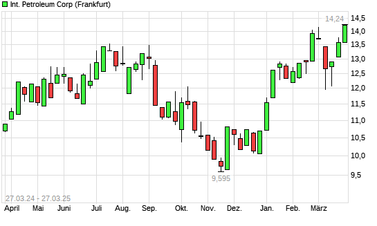 Mit dem Anstieg auf 14,23 EUR hat die International Petroleum-Aktie (ISIN CA46016U1084) am 26.03.2025 ein neues 5-Jahres-Hoch erreicht und damit den Kurs vom 25.03.2025 eingestellt.