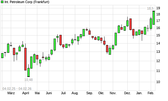 Mit dem Anstieg auf 18,04 EUR hat die International Petroleum-Aktie (ISIN CA46016U1084) am 03.02.2026 ein neues 5-Jahres-Hoch erreicht und damit den Kurs vom 03.12.2025 eingestellt.