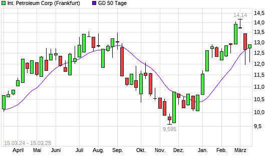 Mit dem Anstieg auf 12,89 EUR hat die International Petroleum-Aktie am 14.03.2025 die 50-Tage-Linie nach oben gekreuzt.
