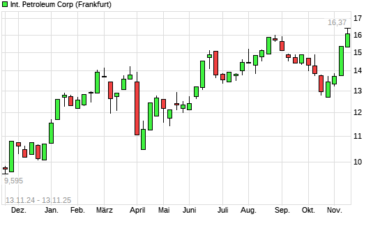 Mit dem Anstieg auf 16,21 EUR hat die International Petroleum-Aktie (ISIN CA46016U1084) am 12.11.2025 ein neues 5-Jahres-Hoch erreicht und damit den Kurs vom 11.11.2025 eingestellt.Die International ...weiterlesen