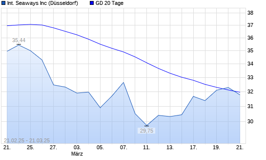 Mit dem Anstieg auf 32,47 EUR hat die International Seaways-Aktie am 20.03.2025 die 20-Tage-Linie nach oben gekreuzt.