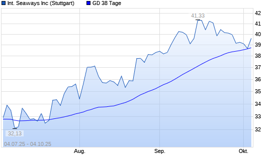Mit dem Anstieg auf 39,62 EUR hat die International Seaways-Aktie am 03.10.2025 die 38-Tage-Linie nach oben gekreuzt.