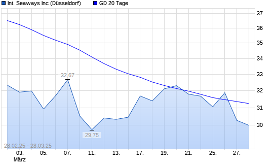 Mit dem Rücksetzer auf 31,14 EUR hat die International Seaways-Aktie am 27.03.2025 die 20-Tage-Linie nach unten gekreuzt.