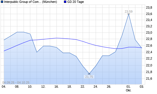 Mit dem Rücksetzer auf 22,32 EUR hat die Interpublic Group-Aktie am 03.10.2025 die 20-Tage-Linie nach unten gekreuzt.