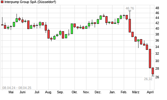 Mit dem Rücksetzer auf 26,46 EUR hat die Interpump Group-Aktie (ISIN IT0001078911) am 07.04.2025 ein neues 3-Jahres-Tief erreicht und damit den Kurs vom 04.04.2025 eingestellt.