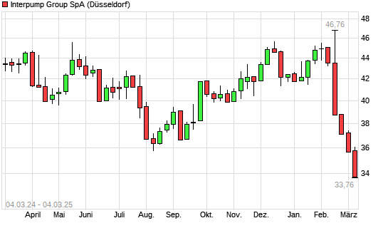 Mit dem Rücksetzer auf 35,58 EUR hat die Interpump Group-Aktie (ISIN IT0001078911) am 03.03.2025 ein neues 6-Monats-Tief erreicht und damit den Kurs vom 28.02.2025 eingestellt.
