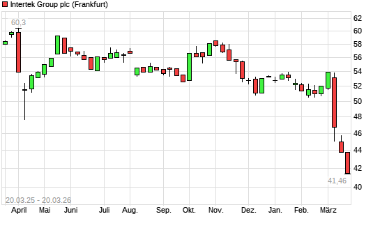 Mit dem Rücksetzer auf 41,60 EUR hat die Intertek Group-Aktie (ISIN GB0031638363) am 19.03.2026 ein neues 3-Jahres-Tief erreicht und damit den Kurs vom 18.03.2026 eingestellt.