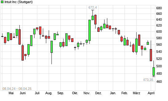 Mit dem Rücksetzer auf 503,00 EUR hat die Intuit-Aktie (ISIN US4612021034) am 07.04.2025 ein neues 12-Monats-Tief erreicht und damit den Kurs vom 31.05.2024 eingestellt.