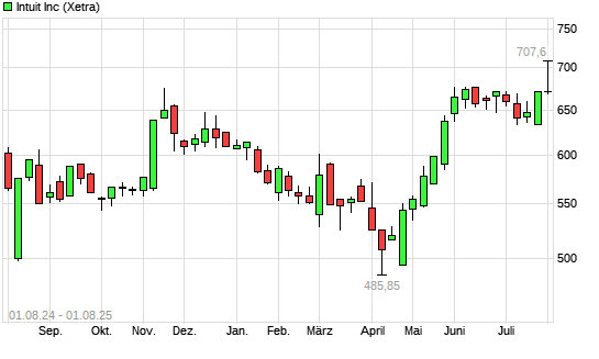 Mit dem Anstieg auf 701,50 EUR hat die Intuit-Aktie (ISIN US4612021034) am 31.07.2025 ein neues All-Time-High erreicht und damit den Kurs vom 30.07.2025 eingestellt.