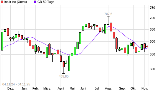 Mit dem Anstieg auf 578,60 EUR hat die Intuit-Aktie am 03.11.2025 die 50-Tage-Linie nach oben gekreuzt.