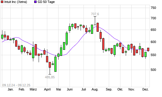 Mit dem Rücksetzer auf 565,80 EUR hat die Intuit-Aktie am 08.12.2025 die 50-Tage-Linie nach unten gekreuzt.