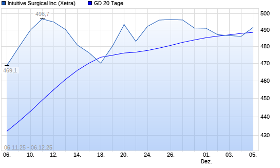 Mit dem Anstieg auf 491,60 EUR hat die Intuitive Surgical-Aktie am 05.12.2025 die 20-Tage-Linie nach oben gekreuzt.