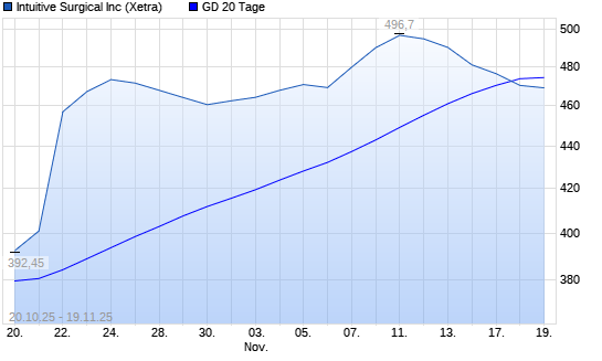 Mit dem Rücksetzer auf 471,10 EUR hat die Intuitive Surgical-Aktie am 18.11.2025 die 20-Tage-Linie nach unten gekreuzt.