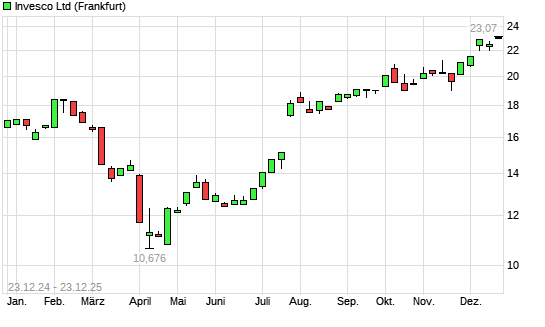 Mit dem Anstieg auf 22,94 EUR hat die Invesco-Aktie (ISIN BMG491BT1088) am 22.12.2025 ein neues 3-Jahres-Hoch erreicht und damit den Kurs vom 12.12.2025 eingestellt.