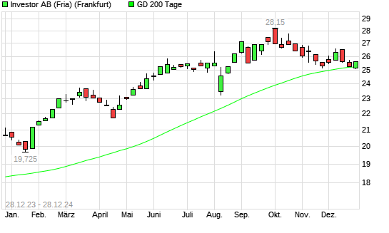Mit dem Anstieg auf 25,63 EUR hat die Investor A-Aktie am 27.12.2024 die 200-Tage-Linie nach oben gekreuzt.