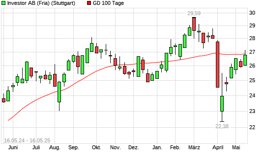 Mit dem Rücksetzer auf 26,72 EUR hat die Investor A-Aktie am 15.05.2025 die 100-Tage-Linie nach unten gekreuzt.