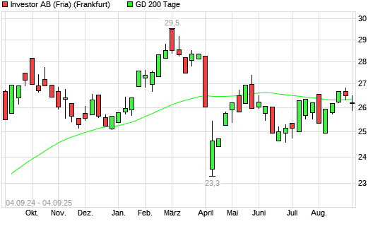 Mit dem Rücksetzer auf 25,86 EUR hat die Investor A-Aktie am 03.09.2025 die 200-Tage-Linie nach unten gekreuzt.