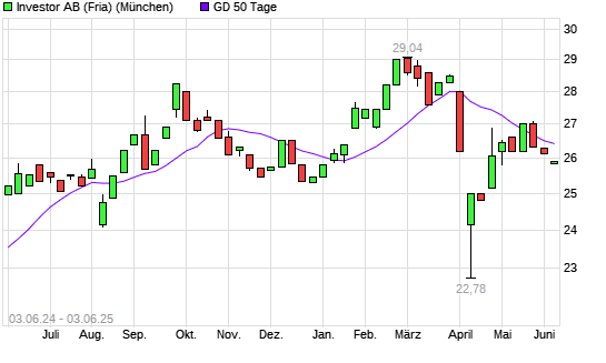 Mit dem Rücksetzer auf 25,75 EUR hat die Investor A-Aktie am 02.06.2025 die 50-Tage-Linie nach unten gekreuzt.