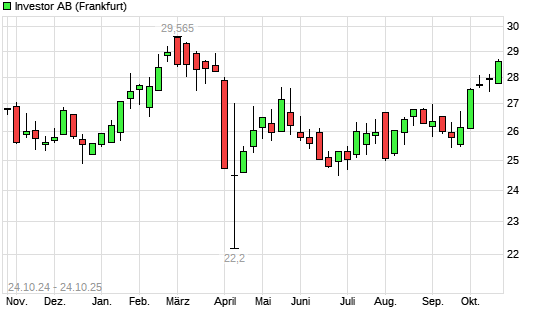 Mit dem Anstieg auf 28,65 EUR hat die Investor B-Aktie (ISIN SE0015811963) am 23.10.2025 ein neues 6-Monats-Hoch erreicht und damit den Kurs vom 22.10.2025 eingestellt.