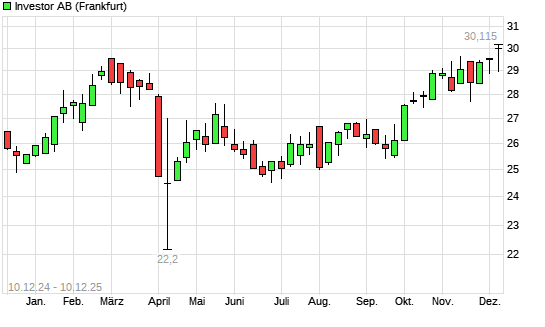 Mit dem Anstieg auf 29,52 EUR hat die Investor B-Aktie (ISIN SE0015811963) am 09.12.2025 ein neues All-Time-High erreicht und damit den Kurs vom 13.11.2025 eingestellt.