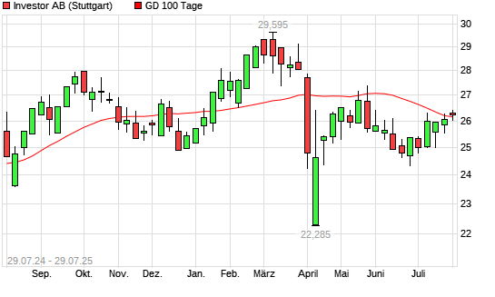 Mit dem Anstieg auf 26,13 EUR hat die Investor B-Aktie am 28.07.2025 die 100-Tage-Linie nach oben gekreuzt.