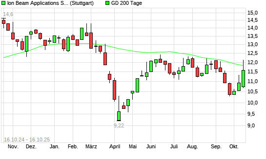 Mit dem Anstieg auf 12,12 EUR hat die Ion Beam Applications-Aktie am 15.10.2025 die 200-Tage-Linie nach oben gekreuzt.