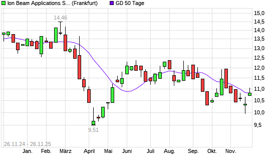 Mit dem Rücksetzer auf 10,78 EUR hat die Ion Beam Applications-Aktie am 25.11.2025 die 50-Tage-Linie nach unten gekreuzt.