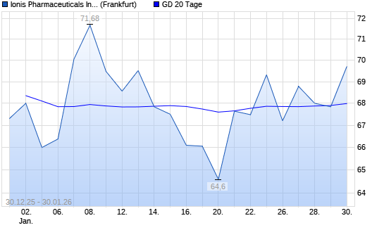 Mit dem Rücksetzer auf 67,84 EUR hat die Ionis Pharmaceuticals-Aktie am 29.01.2026 die 20-Tage-Linie nach unten gekreuzt.