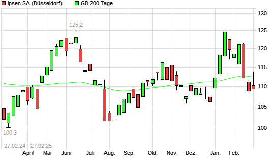 Mit dem Anstieg auf 112,50 EUR hat die Ipsen-Aktie am 26.02.2025 die 200-Tage-Linie nach oben gekreuzt.