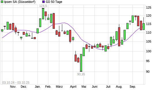 Mit dem Anstieg auf 118,90 EUR hat die Ipsen-Aktie am 02.10.2025 die 50-Tage-Linie nach oben gekreuzt.