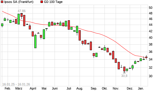 Mit dem Anstieg auf 35,10 EUR hat die Ipsos-Aktie am 15.01.2026 die 100-Tage-Linie nach oben gekreuzt.