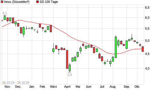 Mit dem Rücksetzer auf 4,68 EUR hat die Iress-Aktie am 15.10.2025 die 100-Tage-Linie nach unten gekreuzt.